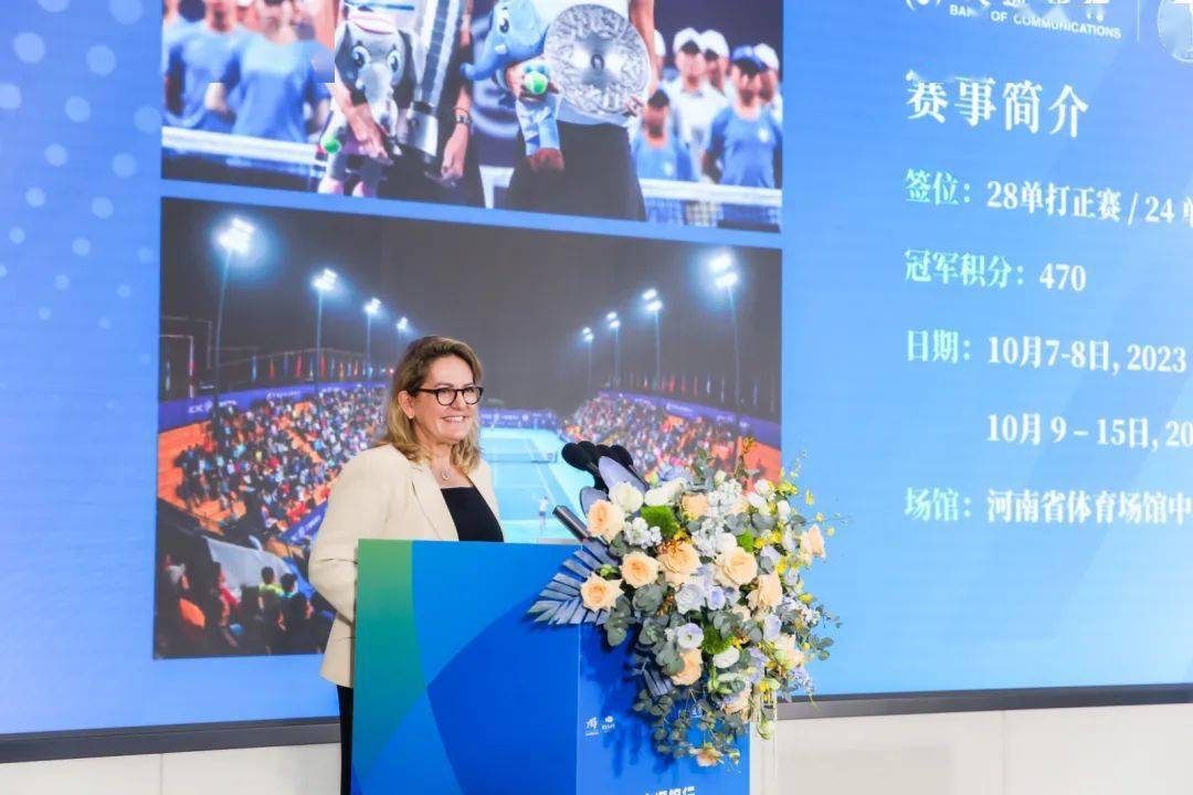 此次发布会,特邀2023交通银行郑州网球公开赛赛事总监Laura Ceccarelli(劳拉·齐卡莱丽),河南省体育局副局长田间,郑州市人民政府副市长陈红民,河南省体育场馆中心主任袁军,郑州市体育局副局长刘宁,郑州市郑东新区建设开发投资总公司党委书记、董事长严文斌,交通银行河南省分行党委委员、副行长王慧等嘉宾出席。郑州市体育局局长李雅主持本次新闻发布会。
