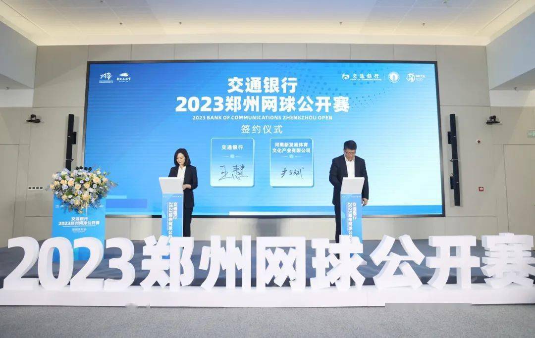 交通银行代表王慧与河南新发展体育文化产业有限公司代表严文斌共同签署《2023交通银行郑州网球公开赛总冠名合作协议》。