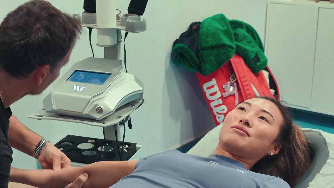 从视频中可以看到,郑钦文的团队正在陪同她进行手肘的康复性训练。她坦言,由于手术后的漫长恢复期,她的手肘一度无法达到正常的屈伸范围。经过数月的努力,才逐渐恢复到普通人的正常水平。